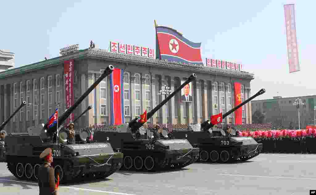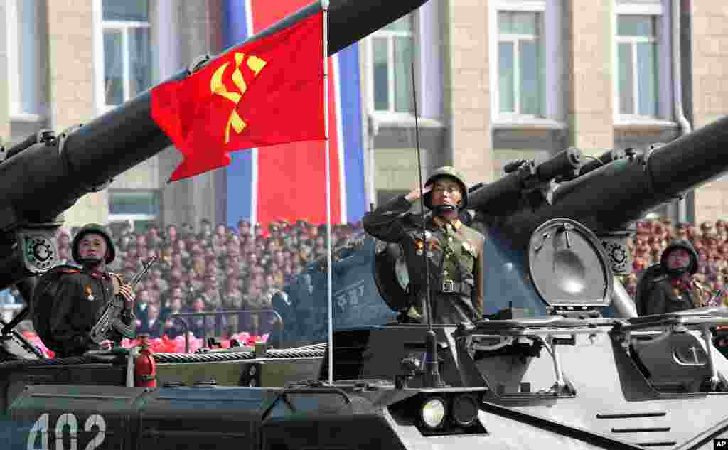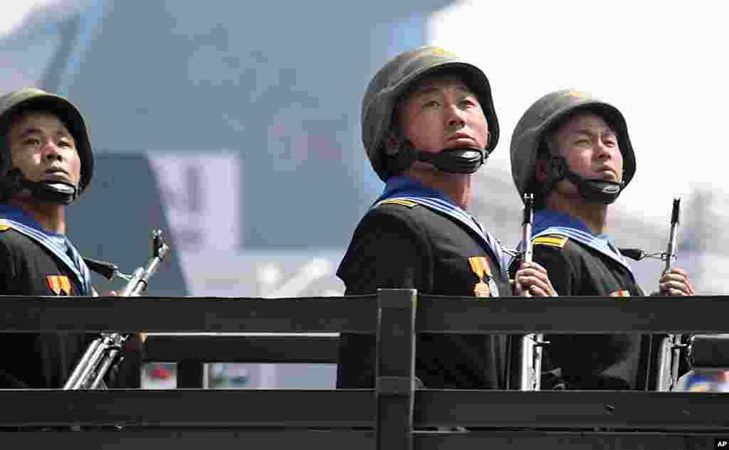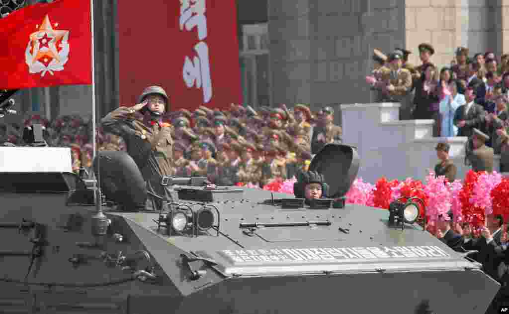 김일성 주석의 100회 생일을 맞는 지난 달 15일 평양의 김일성 광장에서 인민군 열병식이 진행됐습니다. 인민군 육해공군과 노농적위군, 붉은청년근위대가 참가한 가운데, 34종류의 880대가 넘는 역대 최대의 무기 행렬이 이어졌습니다. 특히 북한은 대륙간탄도미사일로 추정되는 신형 장거리미사일을 선보이기도 했습니다. 이날 최초로 공식 연설을 한 김정은 국방위원회 제1위원장은 김일성 주석을 연상시키는 낮은 음색으로 자주와 선군 등을 강조했습니다. 주석단에는 김 제1위원장 외에 최룡해 인민군 총정치국장, 이영호 군 참모장, 김영남 최고인민회의 상임위원장, 최영남 내각 총리, 김국태 당 검열위원장, 김경희 당 비서 등이 올랐습니다. 취재에 백성원 기자입니다.