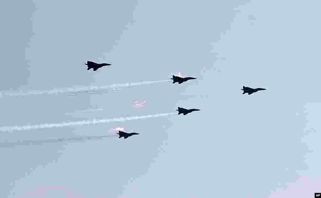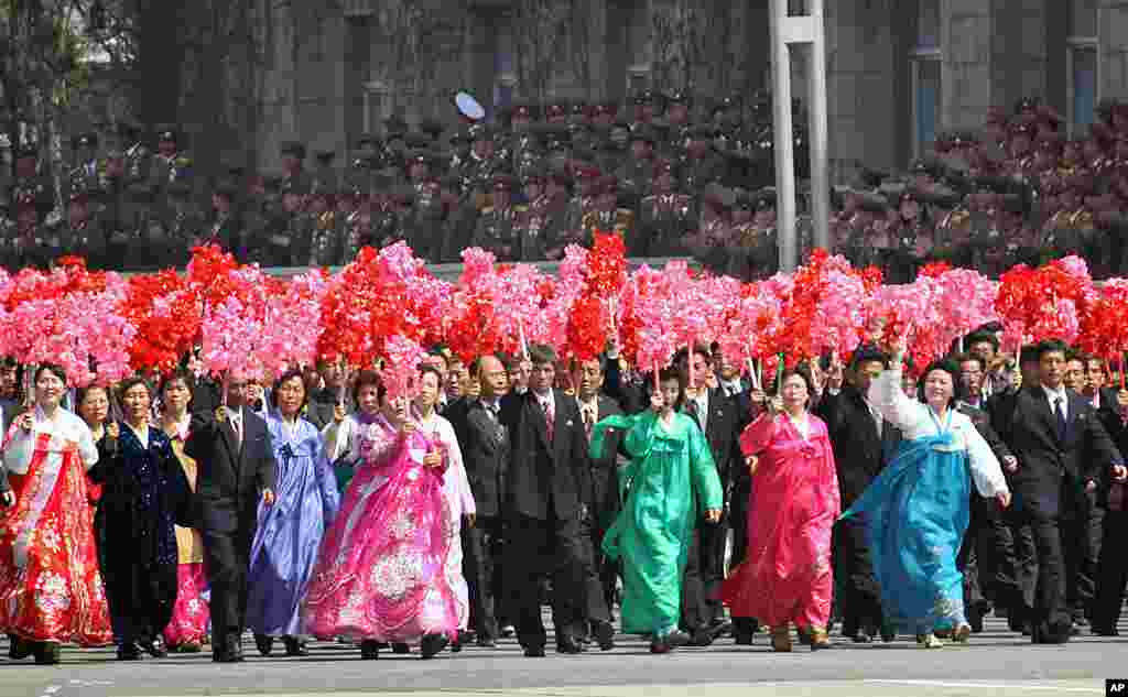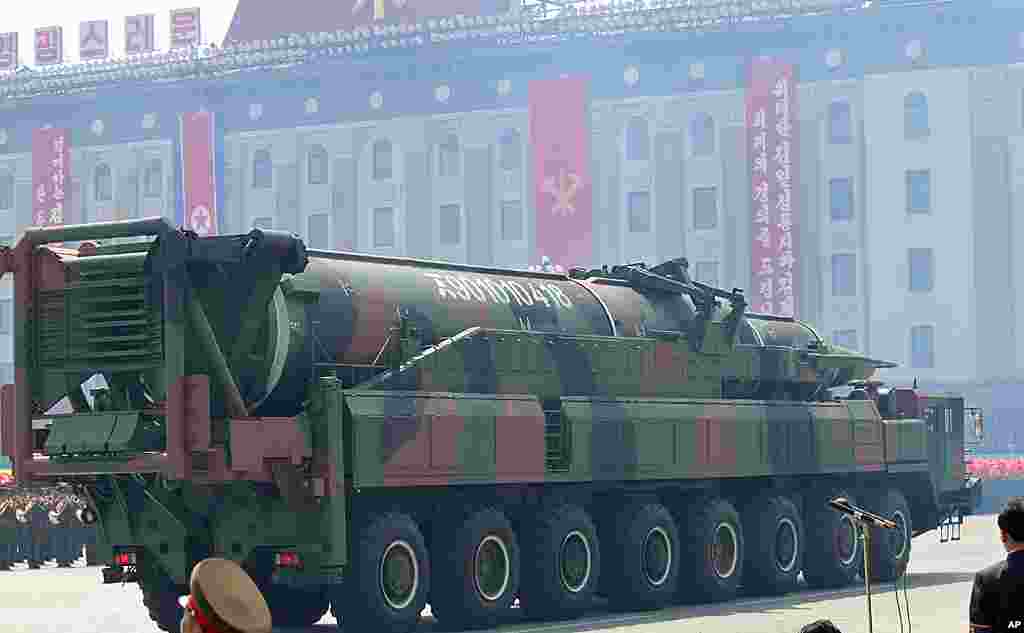 김일성 주석의 100회 생일을 맞는 지난 달 15일 평양의 김일성 광장에서 인민군 열병식이 진행됐습니다. 인민군 육해공군과 노농적위군, 붉은청년근위대가 참가한 가운데, 34종류의 880대가 넘는 역대 최대의 무기 행렬이 이어졌습니다. 특히 북한은 대륙간탄도미사일로 추정되는 신형 장거리미사일을 선보이기도 했습니다. 이날 최초로 공식 연설을 한 김정은 국방위원회 제1위원장은 김일성 주석을 연상시키는 낮은 음색으로 자주와 선군 등을 강조했습니다. 주석단에는 김 제1위원장 외에 최룡해 인민군 총정치국장, 이영호 군 참모장, 김영남 최고인민회의 상임위원장, 최영남 내각 총리, 김국태 당 검열위원장, 김경희 당 비서 등이 올랐습니다. 취재에 백성원 기자입니다.