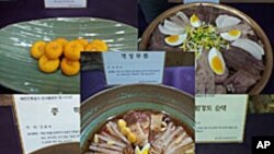 한국사회의 이모저모를 전해드리는 ‘안녕하세요. 서울입니다’. 순서입니다. 최근 서울에서는 북한 의 전통음식을 복원해 그 맛과 모양을 소개하는 특별한 시식회가 열렸습니다. 평양도 노치, 강원도 총떡, 개성 우메기 등 이름만 들어도 ‘맞아, 맞아’ 하실 만한 북한지역의 전통음식인데요. 한국에 정착해 북한전통음식을 연구하고 있는 탈북자 이애란 씨가 옛 문헌과 탈북자, 또 실향민들의 증언을 토대로 연구해 복원한 이 음식들은 앞으로 한국음식(한식)의 세계화 사업에 포함돼 한국의 대표음식으로 소개될 예정이라고 합니다. 사라져가는 북한전통음식의 복원 시식회 현장으로 안내하겠습니다. 서울에서 도성민기자가 전해드립니다